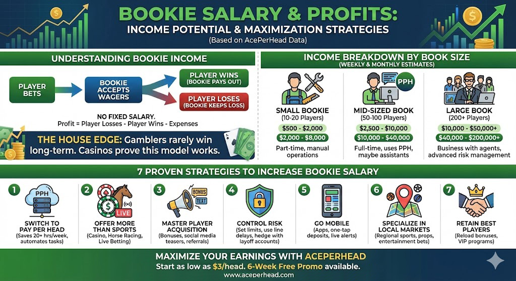 I’ve worked with hundreds of bookies over the past decade, from small-time weekend operators to guys running 500+ player books. Here’s the real breakdown of bookie earnings (no BS), plus proven strategies to maximize your profits.